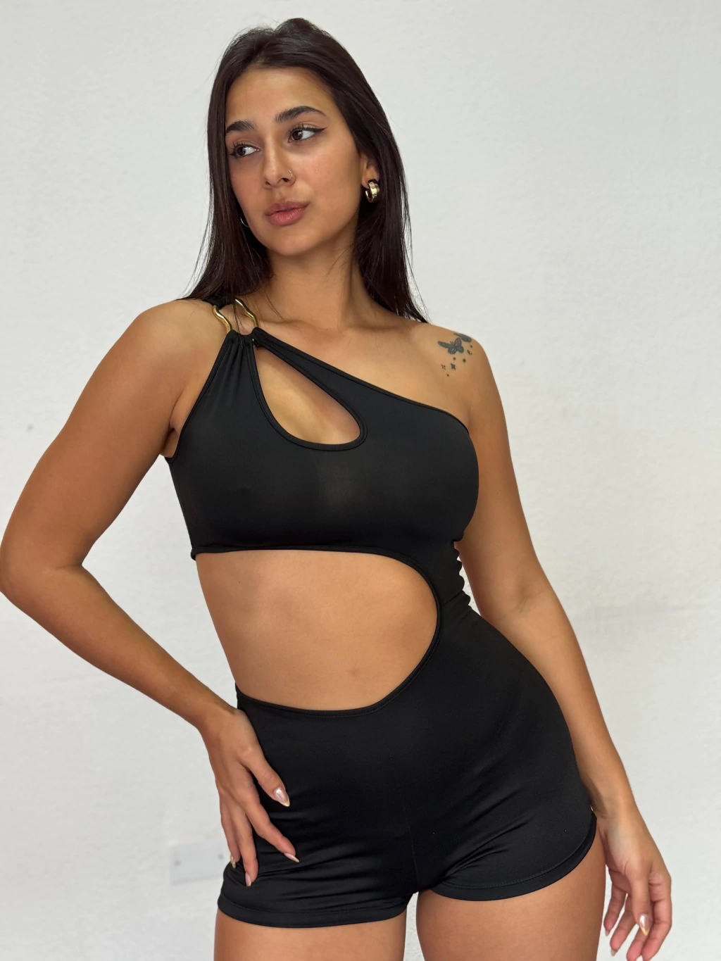 cat suit , un solo hombro, corto , cintura descubierta , talle unico
